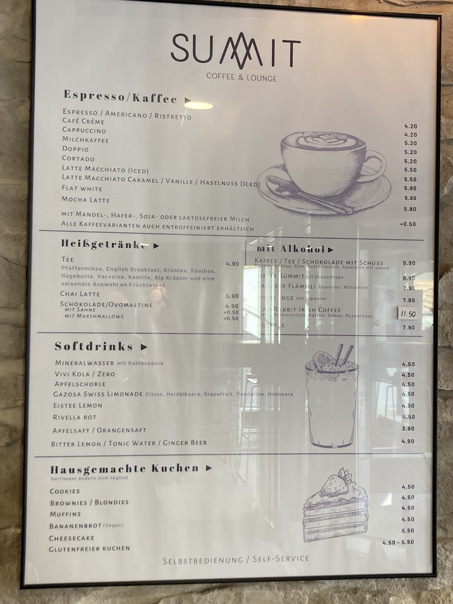 Welcome to Summit Coffee & Lounge, a charming café nestled at Obere Dorfstrasse 38 in Saas-Fee, Switzerland. This hidden gem promises more than just coffee — it's a holistic experience. The menu offers an enticing array of homemade lemonades such as Waldbeere and Ginger Violets, each priced at CHF 8.00, perfect for quenching your thirst after a mountain hike.